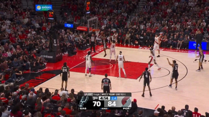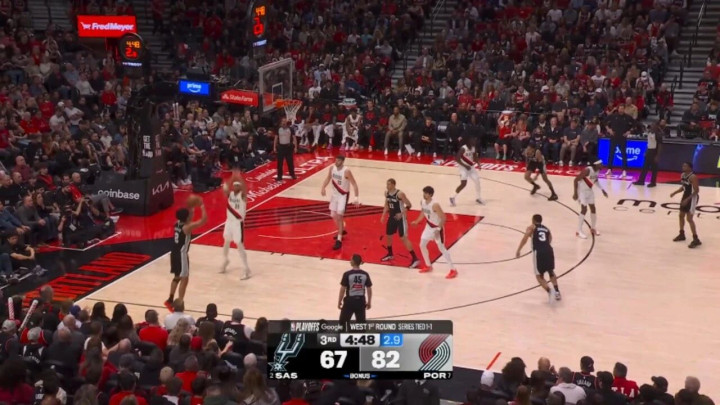 ——剩下4分钟前,马刺67-82过期15分,哈珀1记三分+1记上篮,连得5分