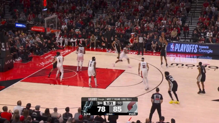 第三节剩下7分钟前,马刺一度64-77过期开荒者,然后哈珀被派上场,况且篡改了场上地点: